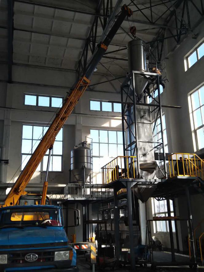 采用正壓氣力輸送將物料由雙錐干燥機送至冷卻降溫倉,冷卻料倉由風機在切線方向向內鼓風,輔助物料熱風交換,料倉內部采用網板折流結構,最大限度延長物料在料倉內的折流時間,使每一粒可以充分完成熱交換。從而達到降溫目的。考慮到用戶生產地處東北,季節性溫差較大,顧鼓風機采用變頻調節風量,提高其使用效率。